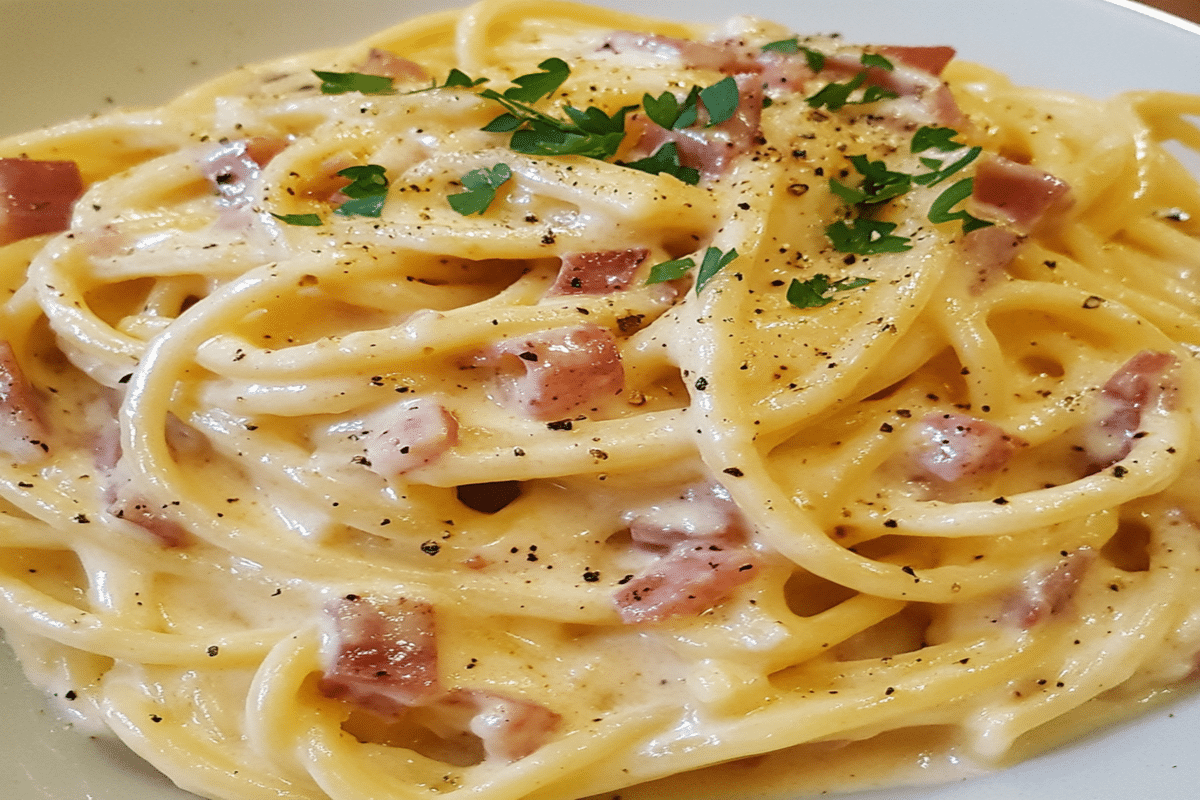 Sos carbonara clasic, cremos și bine legat, pregătit corect acasă, fără smântână.